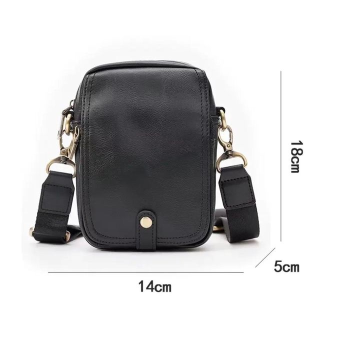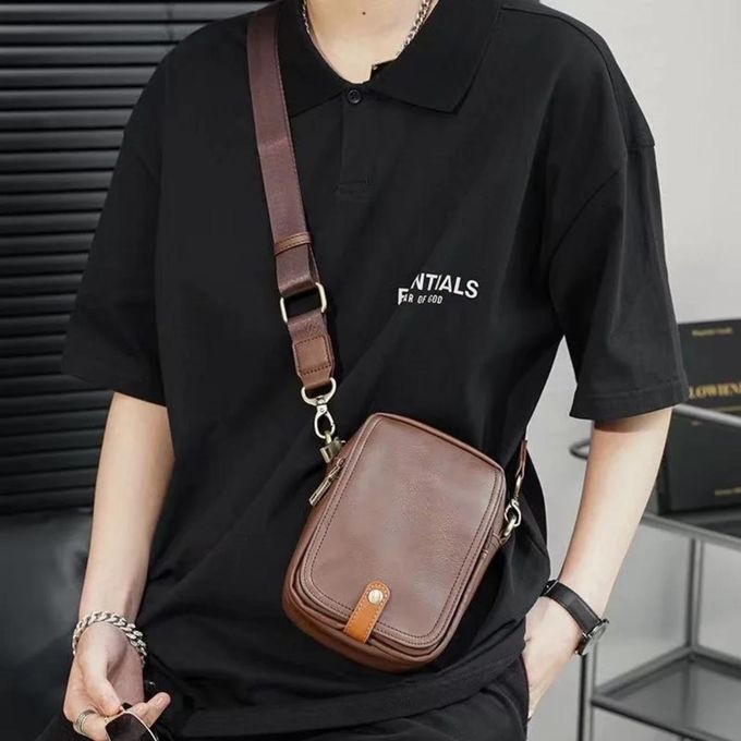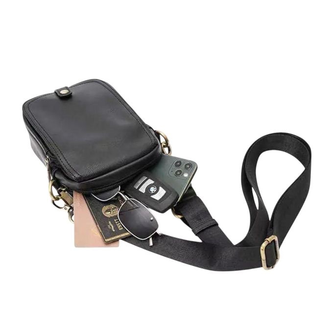 Mini-sacoche bandoulière élégante et compacte. Disponible en noir et marron, cette pochette est votre allié minimaliste pour transporter votre téléphone, portefeuille et clés en toute sécurité. Style moderne, cuir de qualité et sangle ajustable. L’essentiel, à portée de main.